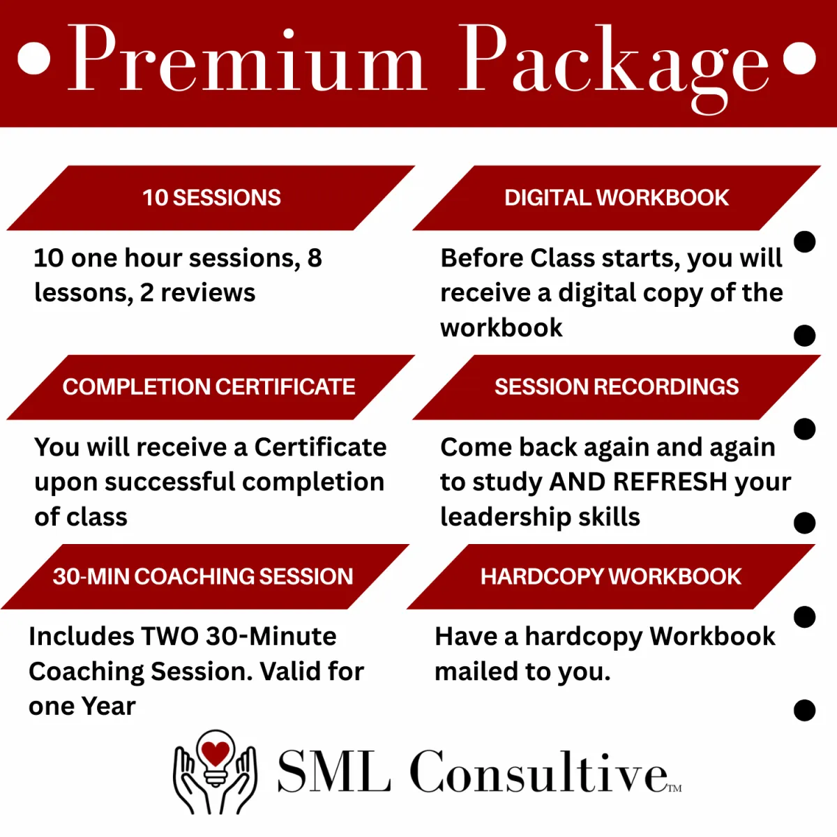 Premium Package: includes everything from the Standard Package plus a physical workbook and an additional 1-on-1 coaching session.